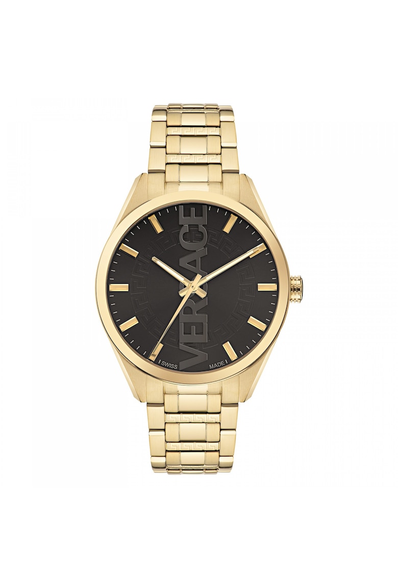 Caracteristici generale Tip mecanism: quartz Stil: casual Tip display: analog Functii: minut Rezistenta la apa: 5 atm Cadran Material geam: cristal safir Culoare cadran: negru Tip citire cadran: linii Carcasa Forma carcasa: rotunda Material carcasa: inox Culoare carcasa: auriu Diametru carcasa: 42 mm Curea/bratara Tip: bratara Material curea/bratara: inox Culoare curea/bratara: auriu