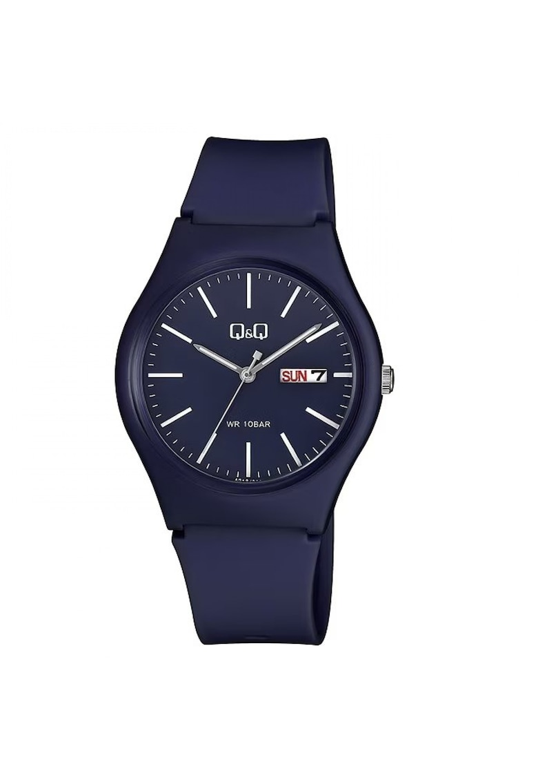 Caracteristici generale Tip mecanism: quartz Stil: casual Tip display: analog Functii: afisare data Rezistenta la apa: 10 atm Cadran Material geam: plastic Culoare cadran: mov Tip citire cadran: cifre arabe Carcasa Forma carcasa: rotunda Material carcasa: rasina Culoare carcasa: mov Diametru carcasa: 38 mm Curea/bratara Tip: curea Material curea/bratara: rasina Culoare curea/bratara: mov