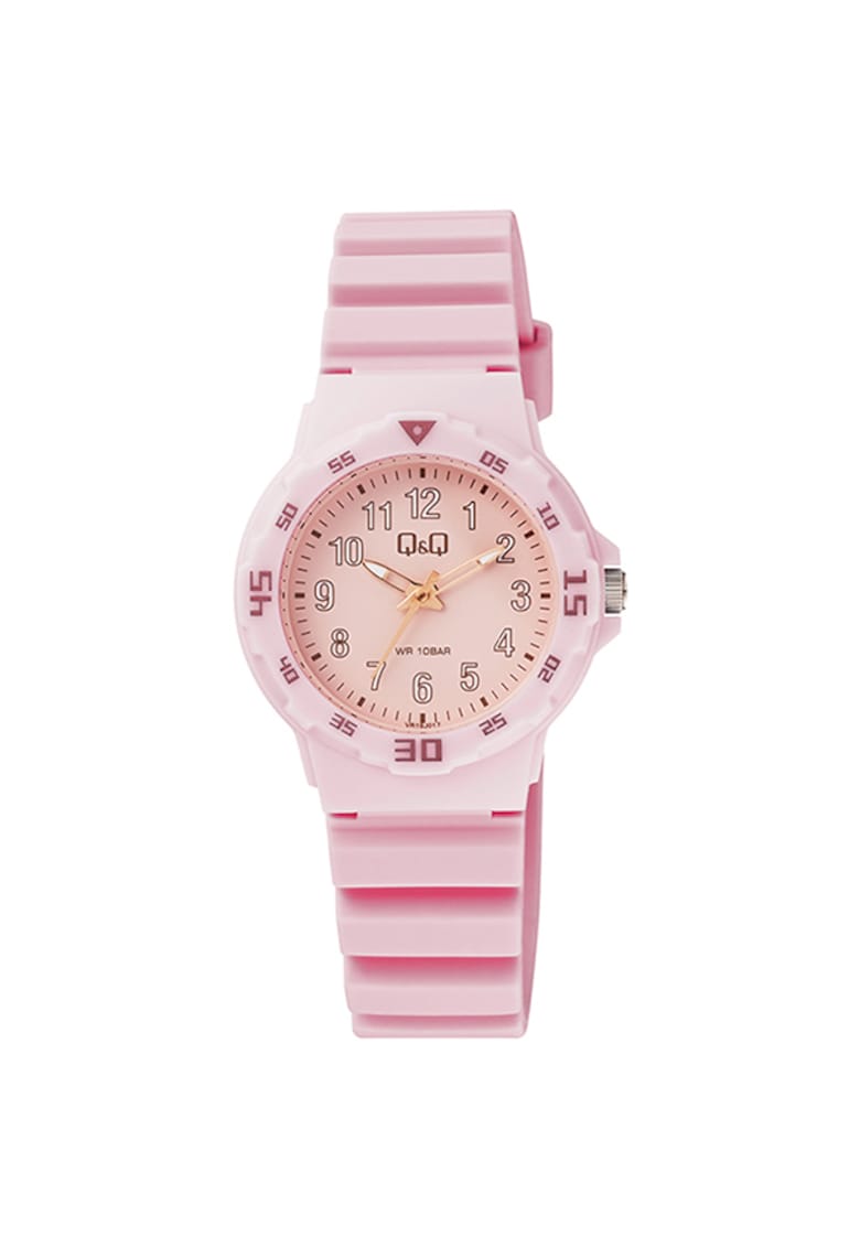 Caracteristici Mecanism: quartz Rezistenta la apa: 10 atm Stil: casual Afisaj: analogic Carcasa: rotunda Culoare carcasa: roz Functii: rezistent la apa Finisaj carcasa: mat Tip citire cadran: cifre arabe Culoare curea/bratara: roz Sistem inchidere: clasic Compozitie Material carcasa: rasina Material curea/bratara: rasina Finisaj curea/bratara: mat Dimensiuni Diametru carcasa: 33 mm