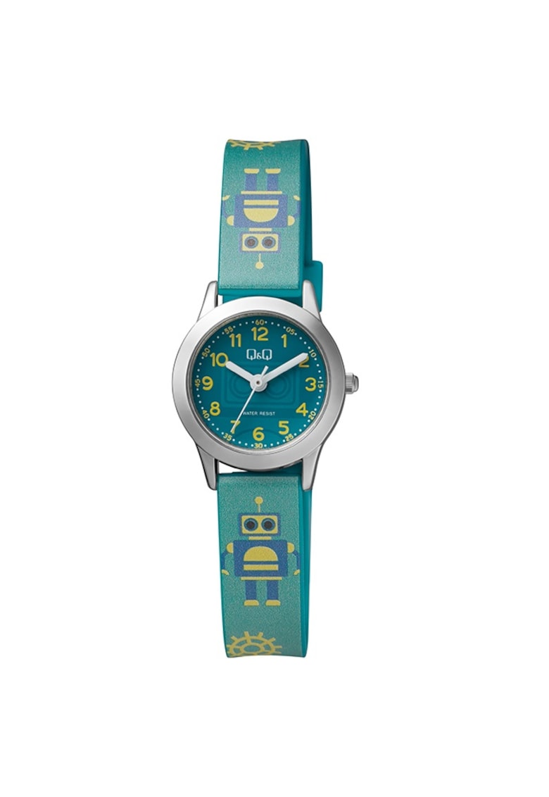 Caracteristici Mecanism: quartz Rezistenta la apa: 3 atm Stil: casual Afisaj: analogic Tematica: robot Carcasa: rotunda Culoare carcasa: argintiu Functii: rezistent la apa Finisaj carcasa: lucios Tip citire cadran: cifre arabe Culoare curea/bratara: verde Sistem inchidere: clasic Compozitie Material carcasa: aliaj Material curea/bratara: cauciuc Material geam: cristal mineral Finisaj curea/bratara: mat Dimensiuni Diametru carcasa: 24 mm Latime curea/bratara: 12 mm