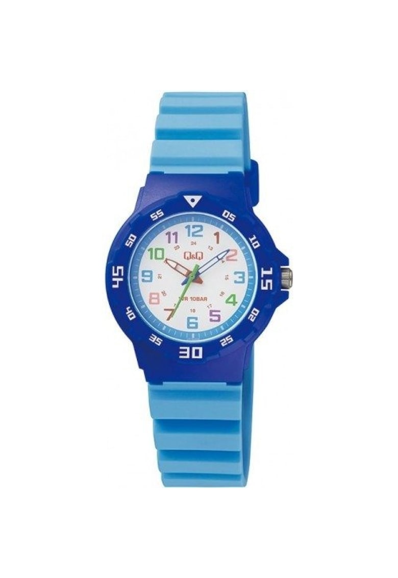 Caracteristici Mecanism: quartz Rezistenta la apa: 10 atm Stil: casual Afisaj: analogic Tematica: clasic Carcasa: rotunda Culoare carcasa: albastru Functii: minut Tip citire cadran: cifre arabe Culoare curea/bratara: albastru Sistem inchidere: clasic Compozitie Material carcasa: rasina Material curea/bratara: rasina Material geam: plastic Dimensiuni Diametru carcasa: 33 mm Latime curea/bratara: 16 mm