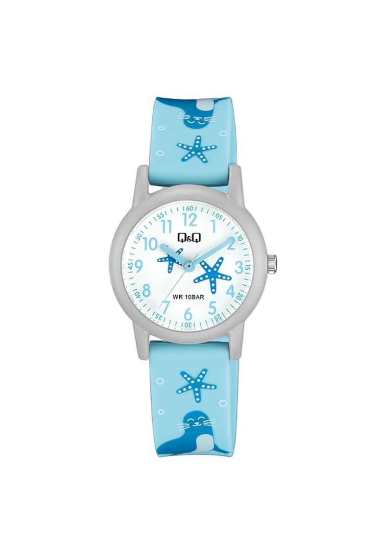 - secunda Tip citire cadran: cifre arabe Culoare curea/bratara: bleu Compozitie Material carcasa: plastic Material curea/bratara: cauciuc Material geam: acrilic Dimensiuni Diametru carcasa: 32 mm Latime curea/bratara: 16 mm