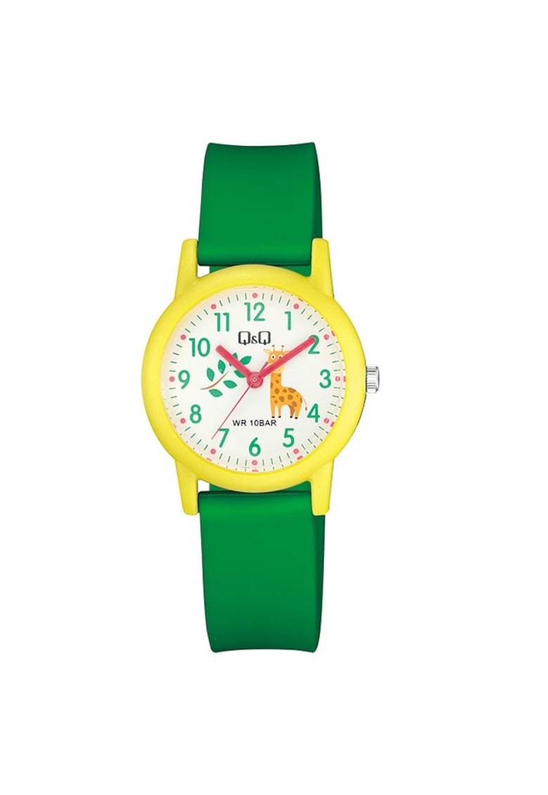 - secunda Tip citire cadran: cifre arabe Culoare curea/bratara: verde Compozitie Material carcasa: plastic Material curea/bratara: cauciuc Material geam: acrilic Dimensiuni Diametru carcasa: 32 mm Latime curea/bratara: 16 mm