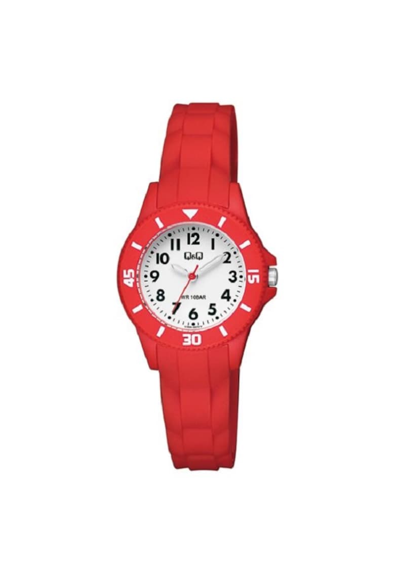 Caracteristici Mecanism: quartz Rezistenta la apa: 10 atm Stil: sport Afisaj: analogic Carcasa: rotunda Culoare carcasa: rosu Functii: minut Tip citire cadran: cifre arabe Culoare curea/bratara: rosu Compozitie Material carcasa: plastic Material curea/bratara: silicon Material geam: acrilic Dimensiuni Diametru carcasa: 30 mm Latime curea/bratara: 14 mm
