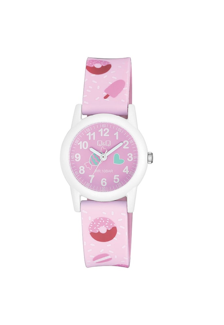 - secunda Tip citire cadran: cifre arabe Culoare curea/bratara: roz Sistem inchidere: catarama Compozitie Material carcasa: plastic Material curea/bratara: cauciuc Material geam: acrilic Dimensiuni Diametru carcasa: 30 mm