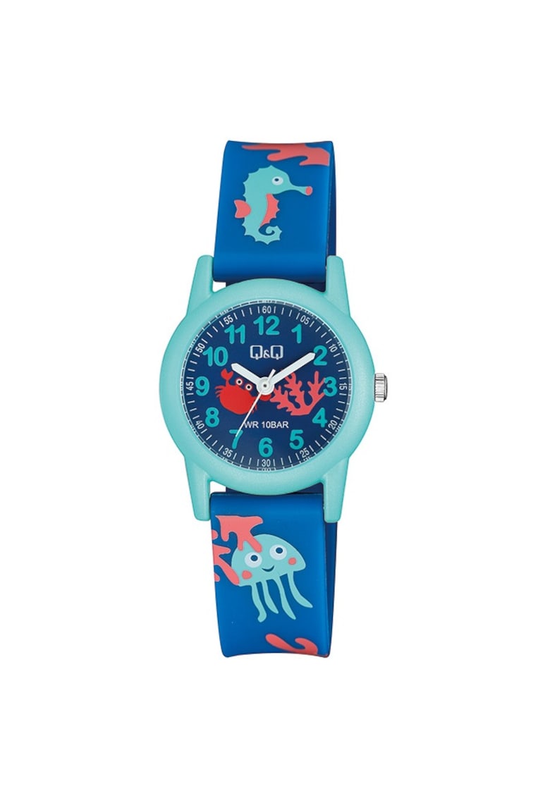 - secunda Finisaj carcasa: mat Tip citire cadran: cifre arabe Culoare curea/bratara: albastru Sistem inchidere: clasic Compozitie Material carcasa: plastic Material curea/bratara: cauciuc Material geam: acril Finisaj curea/bratara: mat Dimensiuni Diametru carcasa: 30 mm