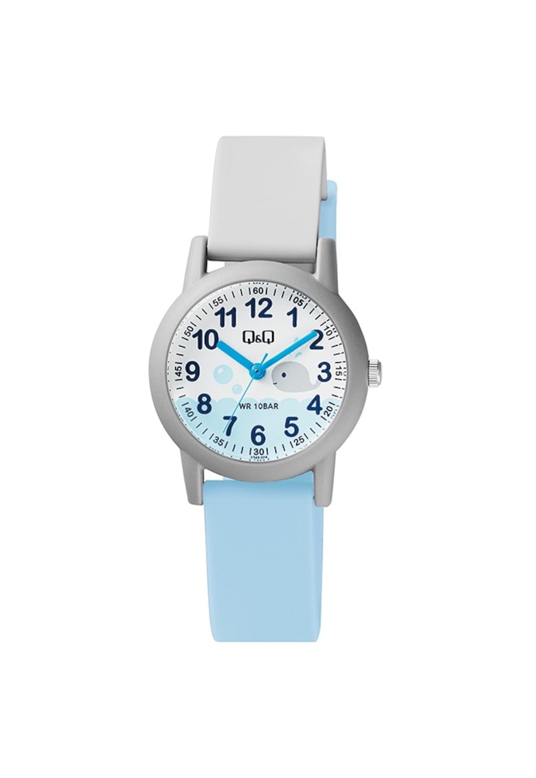 - minut Finisaj carcasa: mat Tip citire cadran: cifre arabe Culoare curea/bratara: gri/bleu Sistem inchidere: clasic Compozitie Material carcasa: plastic Material curea/bratara: silicon