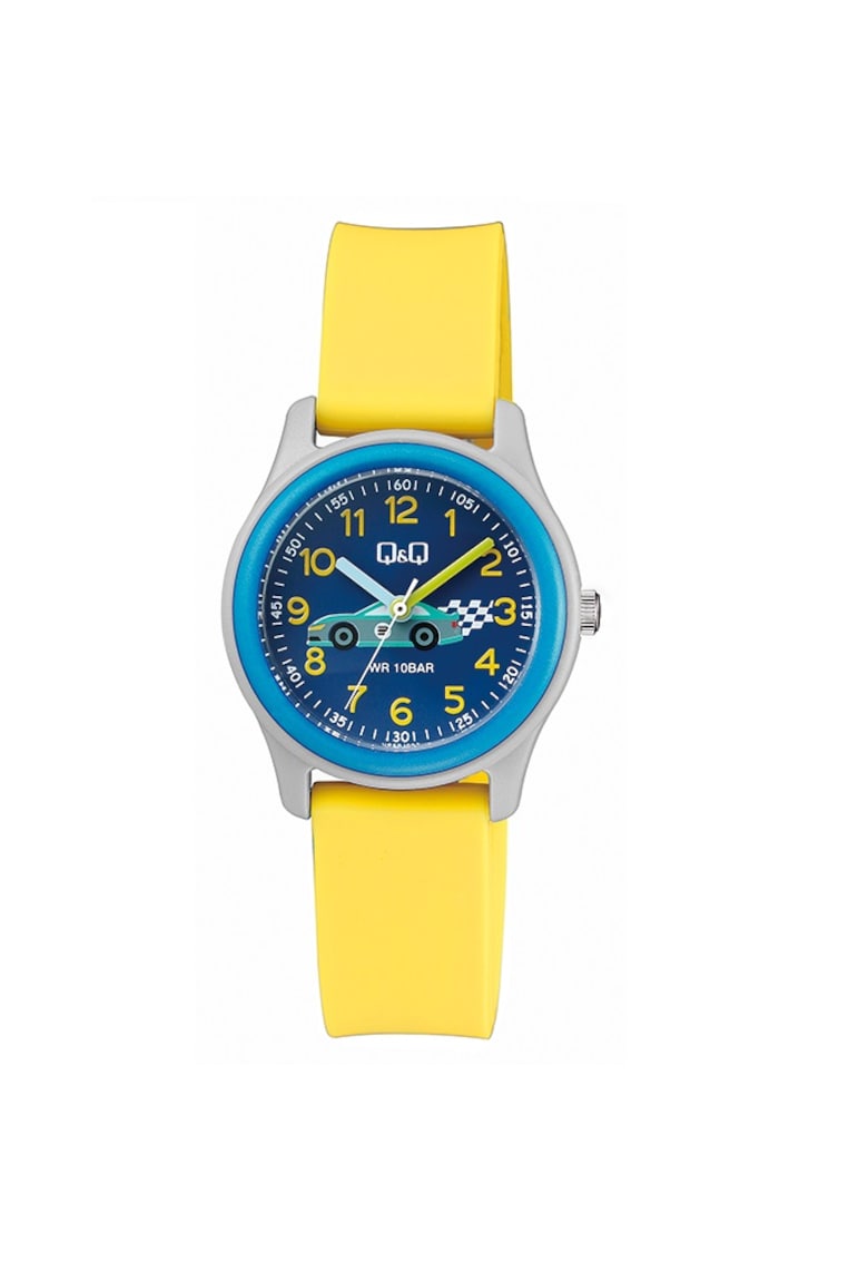 Caracteristici Mecanism: quartz Rezistenta la apa: 10 atm Stil: casual Afisaj: analogic Tematica: masinuta Carcasa: rotunda Culoare carcasa: albastru Finisaj carcasa: mat Tip citire cadran: cifre arabe Culoare curea/bratara: galben Sistem inchidere: clasic Compozitie Material carcasa: plastic Material curea/bratara: cauciuc Material geam: acril Finisaj curea/bratara: mat Dimensiuni Diametru carcasa: 32 mm Latime curea/bratara: 16 mm