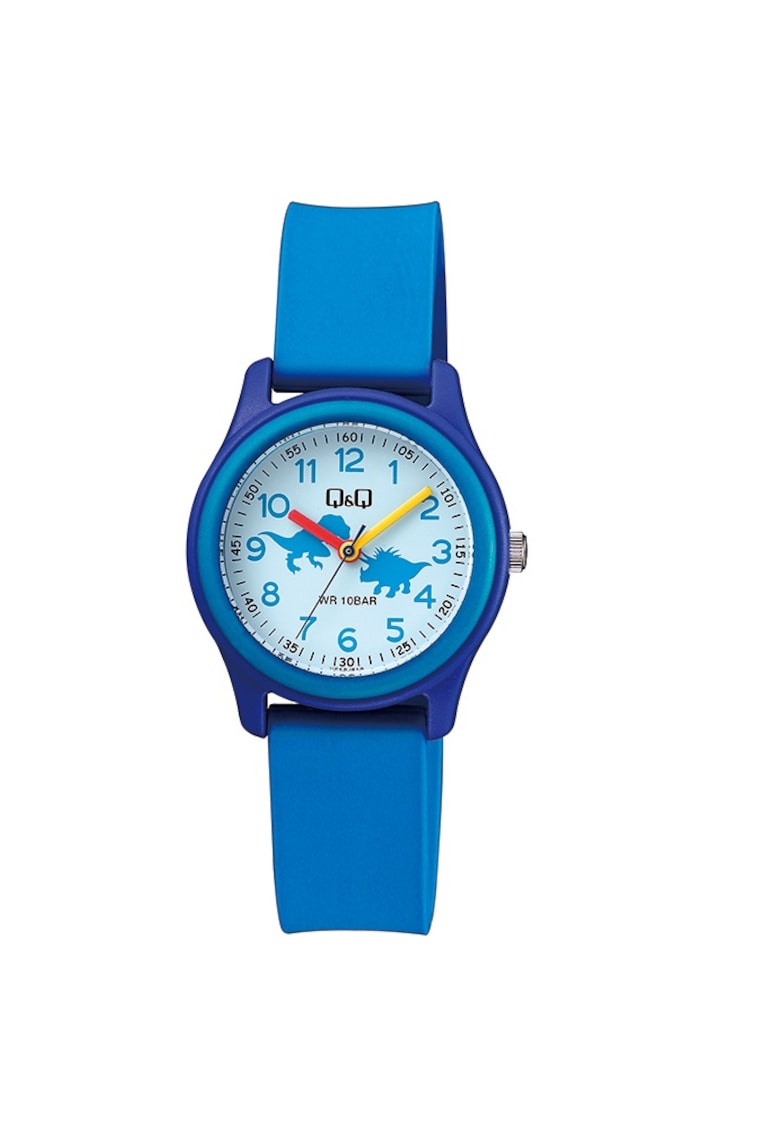 - minut Tip citire cadran: cifre arabe Culoare curea/bratara: albastru Sistem inchidere: catarama Compozitie Material carcasa: plastic cu capac din otel inoxidabil Material curea/bratara: cauciuc Material geam: acrilic Dimensiuni Diametru carcasa: 32 mm Latime curea/bratara: 16 mm
