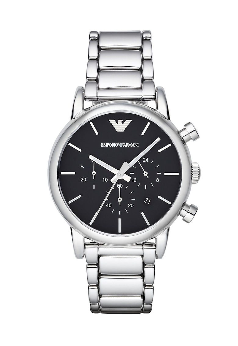 - cronometru Rezistenta la apa: 5 atm Cadran Material geam: cristal mineral Culoare cadran: negru Tip citire cadran: linii Carcasa Forma carcasa: rotunda Material carcasa: inox Culoare carcasa: argintiu Diametru carcasa: 41 mm Curea/bratara Tip: bratara Material curea/bratara: inox Culoare curea/bratara: argint