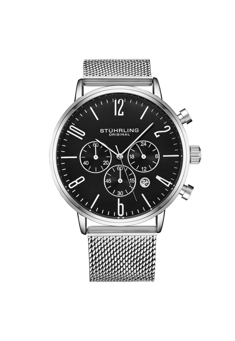- cronometru Rezistenta la apa: 3 atm Cadran Material geam: cristal mineral Culoare cadran: negru Carcasa Forma carcasa: rotunda Material carcasa: inox Culoare carcasa: argintiu Diametru carcasa: 41 mm Curea/bratara Tip: plasa Material curea/bratara: inox Culoare curea/bratara: argintiu