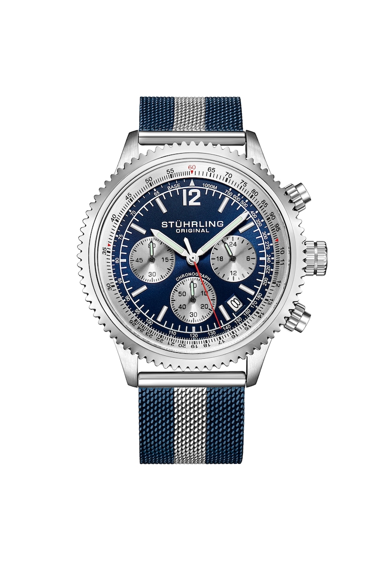 - cronograf Rezistenta la apa: 5 atm Cadran Material geam: cristal mineral Culoare cadran: bleumarin Tip citire cadran: linii Carcasa Forma carcasa: rotunda Material carcasa: inox Culoare carcasa: argintiu Diametru carcasa: 44 mm Curea/bratara Tip: plasa Material curea/bratara: inox Culoare curea/bratara: argintiu