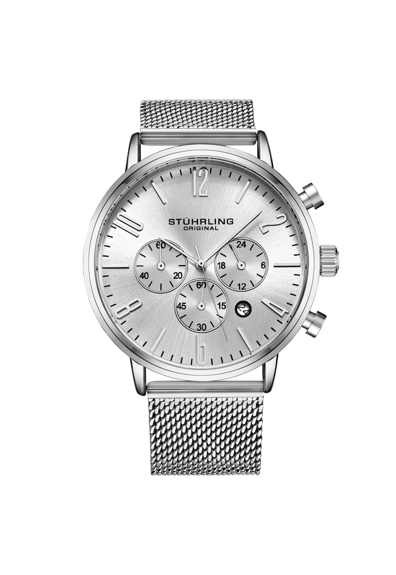- cronometru Rezistenta la apa: 3 atm Cadran Material geam: cristal mineral Culoare cadran: argintiu Carcasa Forma carcasa: rotunda Material carcasa: inox Culoare carcasa: argintiu Diametru carcasa: 41 mm Curea/bratara Tip: plasa Material curea/bratara: inox Culoare curea/bratara: argintiu