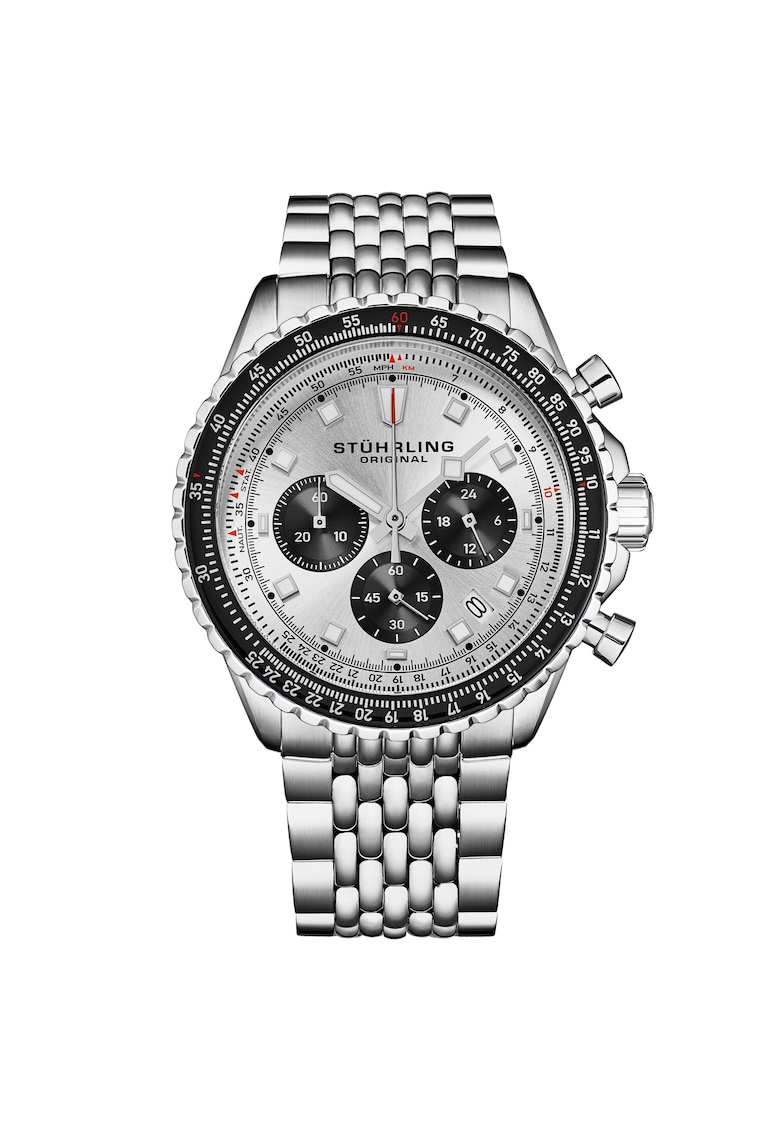 - tahimetru Rezistenta la apa: 10 atm Cadran Material geam: cristal mineral Culoare cadran: argintiu Carcasa Forma carcasa: rotunda Material carcasa: inox Culoare carcasa: argintiu Diametru carcasa: 44 mm Curea/bratara Tip: bratara Material curea/bratara: inox Culoare curea/bratara: argintiu