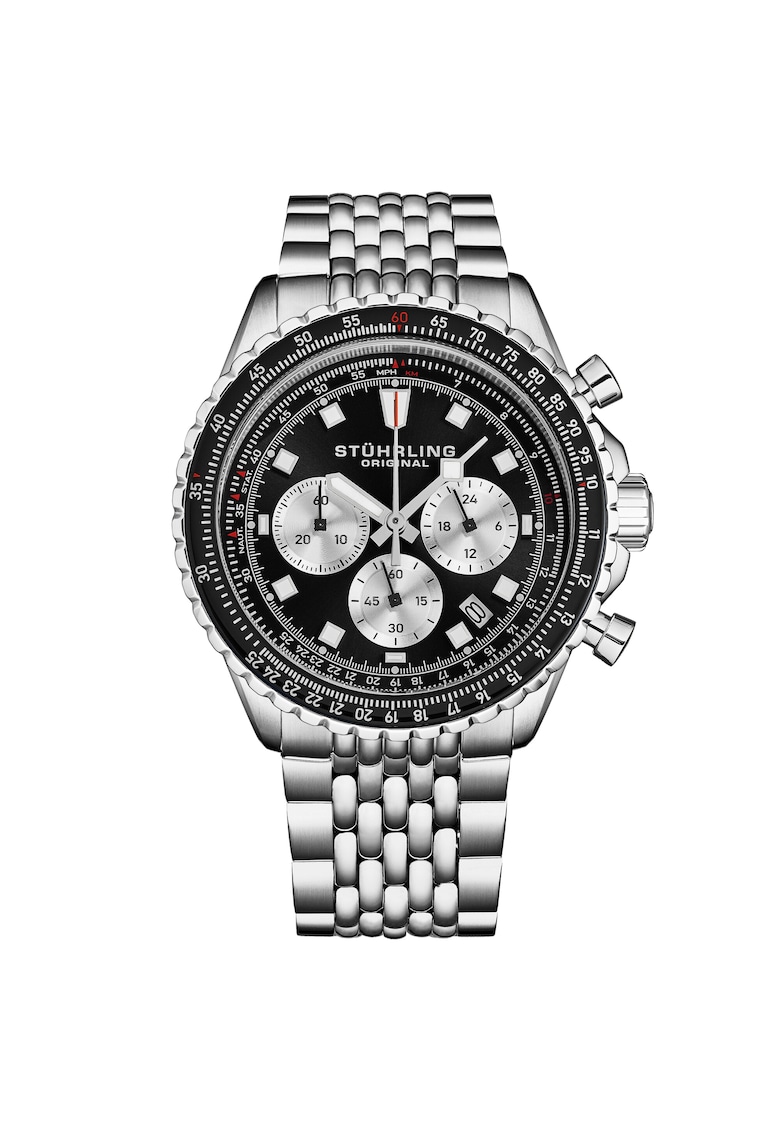 - tahimetru Rezistenta la apa: 10 atm Cadran Material geam: cristal mineral Culoare cadran: negru Carcasa Forma carcasa: rotunda Material carcasa: inox Culoare carcasa: argintiu Diametru carcasa: 44 mm Curea/bratara Tip: bratara Material curea/bratara: inox Culoare curea/bratara: argintiu