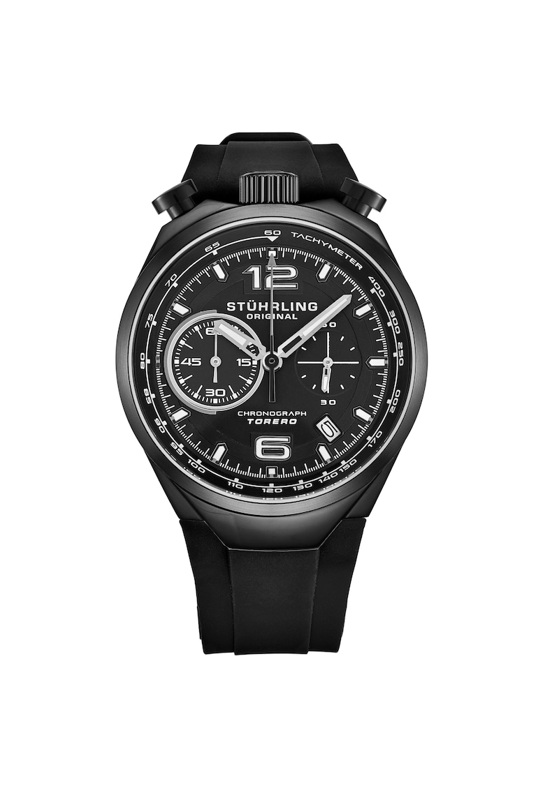 - cronograf Rezistenta la apa: 5 atm Cadran Material geam: cristal mineral Tip citire cadran: cifre arabe Carcasa Forma carcasa: rotunda Material carcasa: inox Culoare carcasa: negru Curea/bratara Tip: curea Material curea/bratara: silicon Culoare curea/bratara: negru