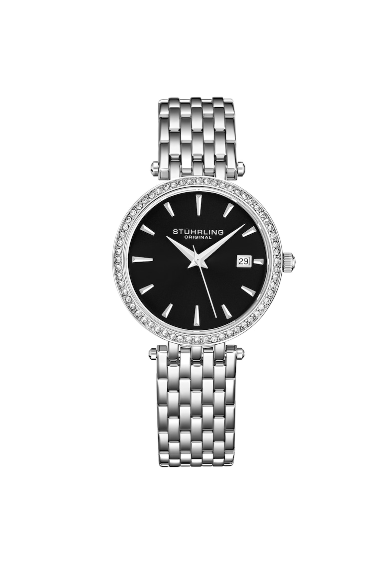- afisare data Rezistenta la apa: 5 atm Detalii: cristale pe coroana Cadran Material geam: cristal mineral Culoare cadran: negru Carcasa Forma carcasa: rotunda Material carcasa: inox Culoare carcasa: argintiu Diametru carcasa: 34 mm Curea/bratara Tip: bratara Material curea/bratara: inox Culoare curea/bratara: argintiu