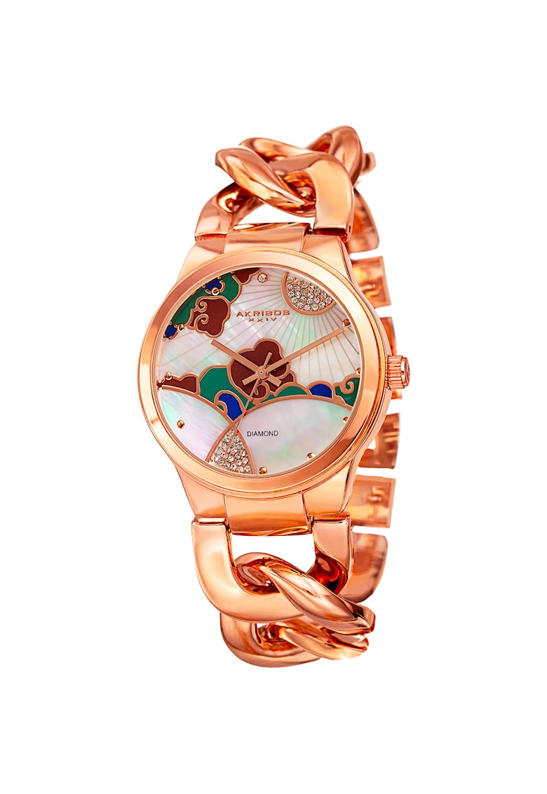 - secunda Rezistenta la apa: 3 atm Cadran Material geam: cristal mineral Tip citire cadran: puncte Carcasa Forma carcasa: rotunda Material carcasa: aliaj Culoare carcasa: auriu rose Curea/bratara Tip: bratara Material curea/bratara: aliaj Culoare curea/bratara: auriu rose