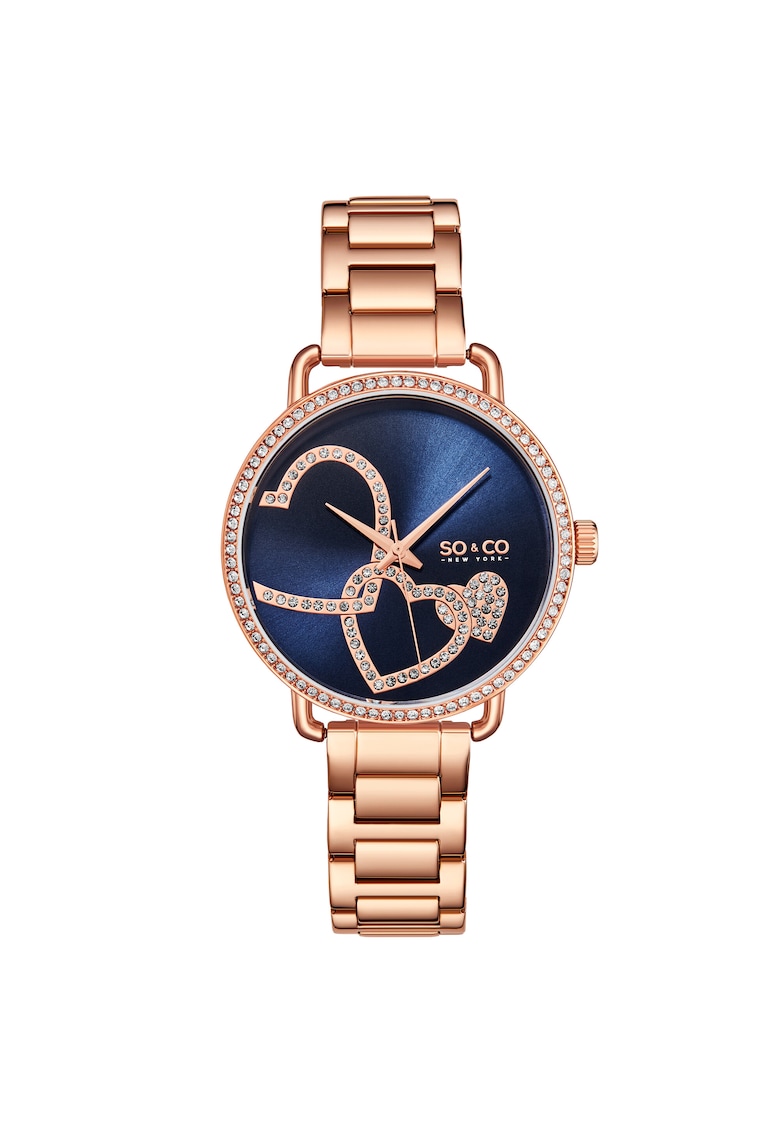 - secunda Rezistenta la apa: 3 atm Cadran Material geam: cristal mineral Culoare cadran: bleumarin sidefat Tip citire cadran: fara indici Carcasa Forma carcasa: rotunda Material carcasa: aliaj Culoare carcasa: auriu rose Diametru carcasa: 38 mm Curea/bratara Tip: bratara Material curea/bratara: inox Culoare curea/bratara: auriu rose