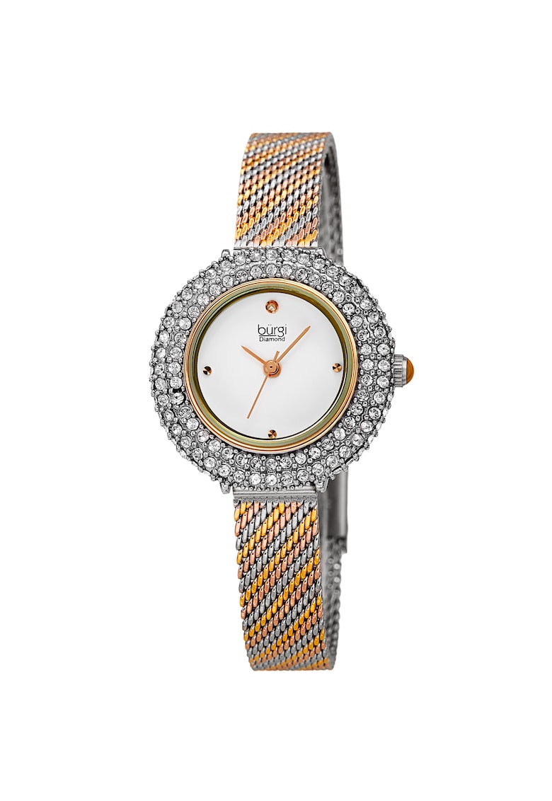 - secunda Rezistenta la apa: 3 atm Detalii: decorat cu cristale swarovski® Cadran Material geam: cristal mineral Culoare cadran: alb Carcasa Forma carcasa: rotunda Material carcasa: aliaj Culoare carcasa: auriu Diametru carcasa: 29 mm Grosime carcasa: 8 mm Curea/bratara Tip: bratara Material curea/bratara: inox Culoare curea/bratara: argintiu