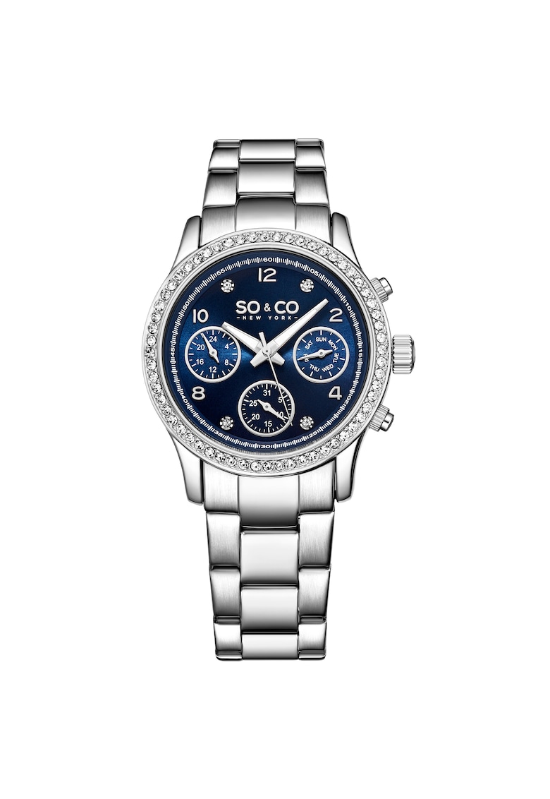 - afisare 24 h Rezistenta la apa: 5 atm Cadran Material geam: cristal mineral Culoare cadran: bluemarin Carcasa Forma carcasa: rotunda Material carcasa: aliaj Culoare carcasa: argintiu Diametru carcasa: 38 mm Curea/bratara Tip: bratara Material curea/bratara: inox Culoare curea/bratara: argintiu