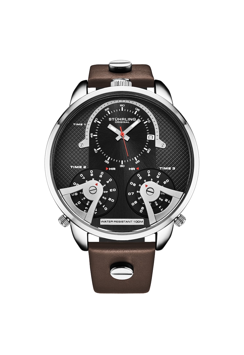 - mai multe fuse orare Rezistenta la apa: 10 atm Cadran Material geam: cristal mineral Tip citire cadran: cifre arabe Carcasa Forma carcasa: rotunda Material carcasa: aliaj Culoare carcasa: argintiu Diametru carcasa: 50 mm Curea/bratara Tip: curea Material curea/bratara: piele naturala Culoare curea/bratara: maro inchis