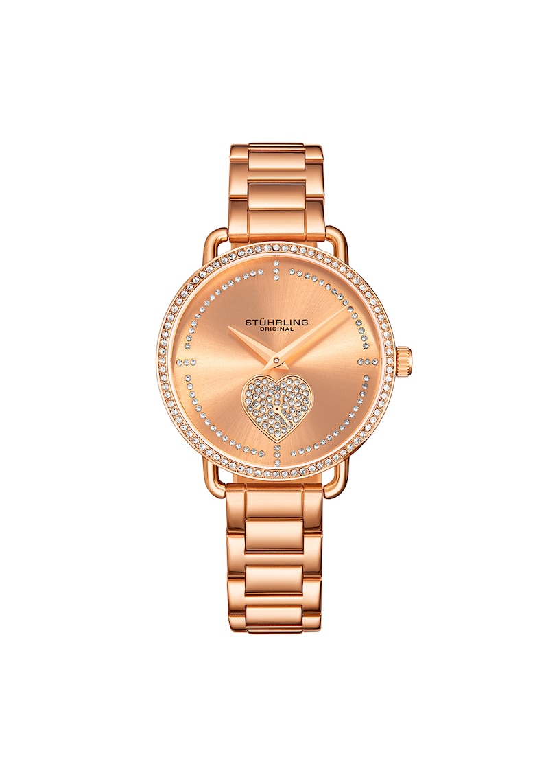 - secunda Rezistenta la apa: 3 atm Detalii: decorat cu cristale Cadran Material geam: cristal mineral Culoare cadran: auriu rose Carcasa Forma carcasa: rotunda Material carcasa: inox Culoare carcasa: auriu rose Diametru carcasa: 38 mm Curea/bratara Tip: bratara Material curea/bratara: inox Culoare curea/bratara: auriu rose