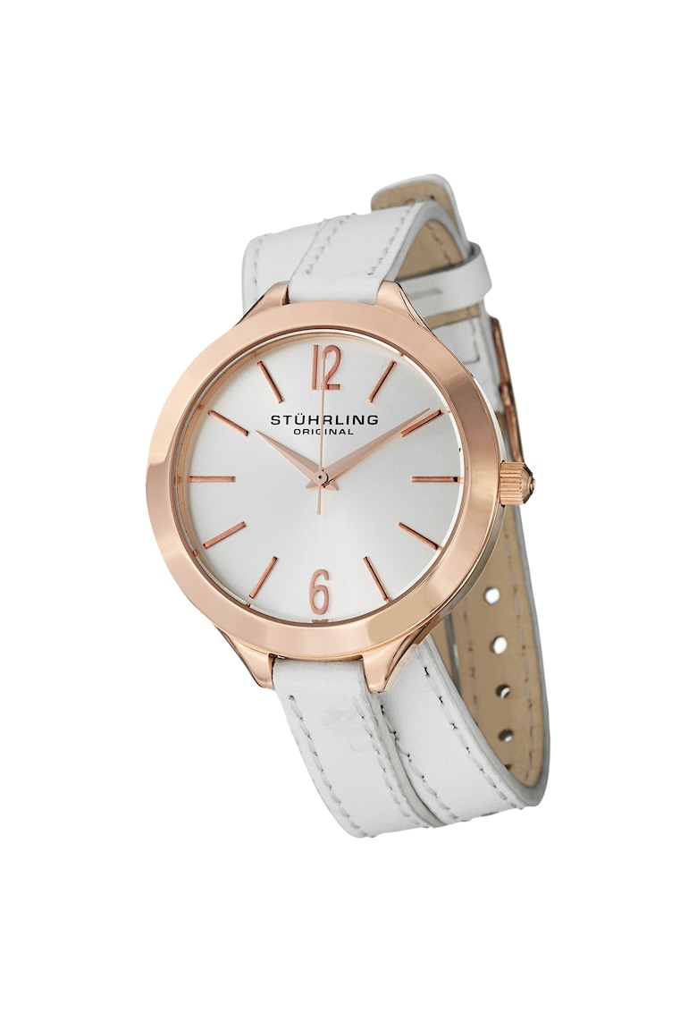 - secunda Sistem inchidere: catarama Rezistenta la apa: 5 atm Cadran Material geam: cristal mineral Tip citire cadran: linii Carcasa Forma carcasa: rotunda Material carcasa: inox Culoare carcasa: auriu rose Curea/bratara Tip: curea Material curea/bratara: piele naturala Culoare curea/bratara: alb