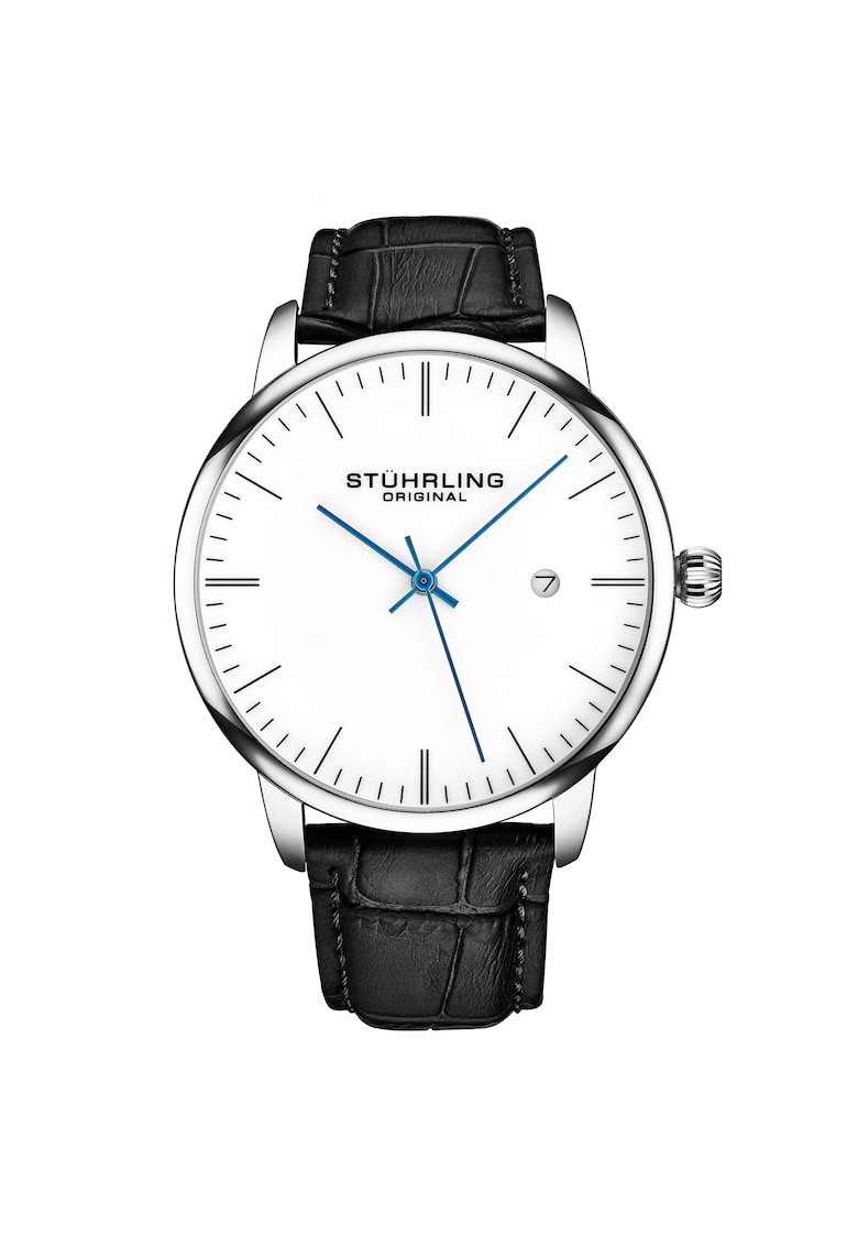 - secunda Rezistenta la apa: 5 atm Cadran Material geam: cristal mineral Culoare cadran: alb Tip citire cadran: linii Carcasa Forma carcasa: rotunda Material carcasa: inox Culoare carcasa: argintiu Diametru carcasa: 40 mm Curea/bratara Tip: curea Material curea/bratara: piele naturala Culoare curea/bratara: negru