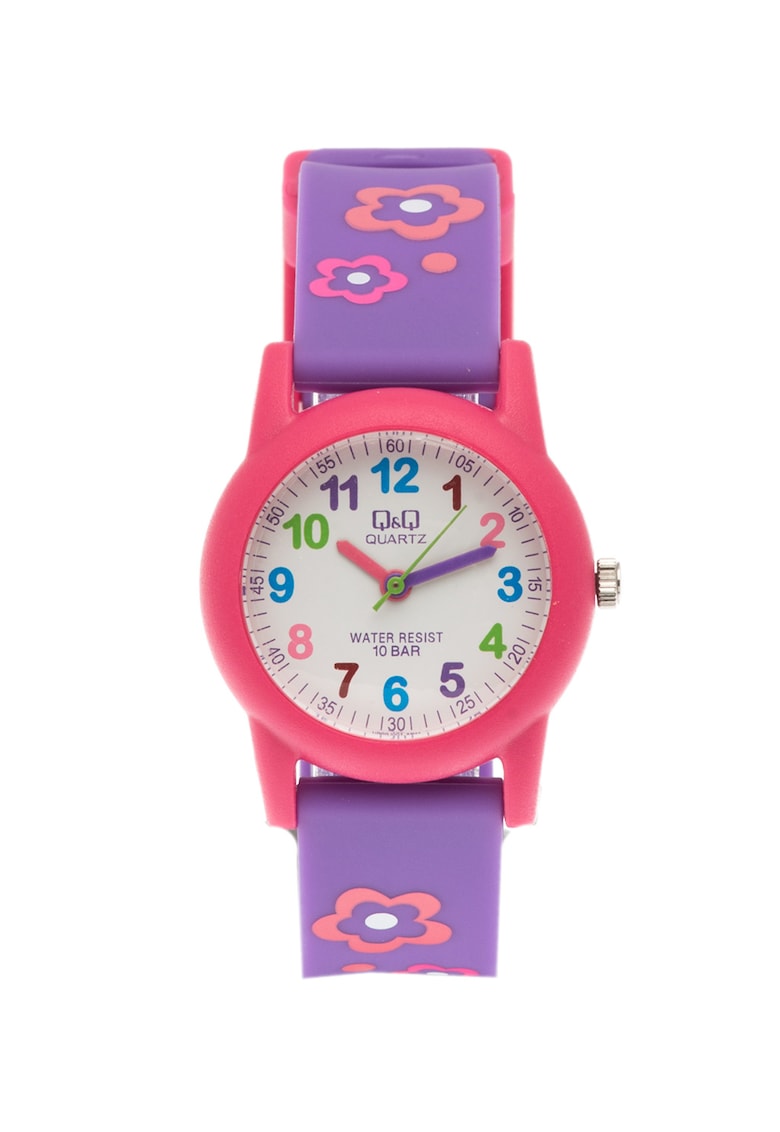 - minut Culoare curea/bratara: lila Compozitie Material carcasa: plastic Material curea/bratara: plastic Material geam: mineral Dimensiuni Diametru carcasa: 30 mm