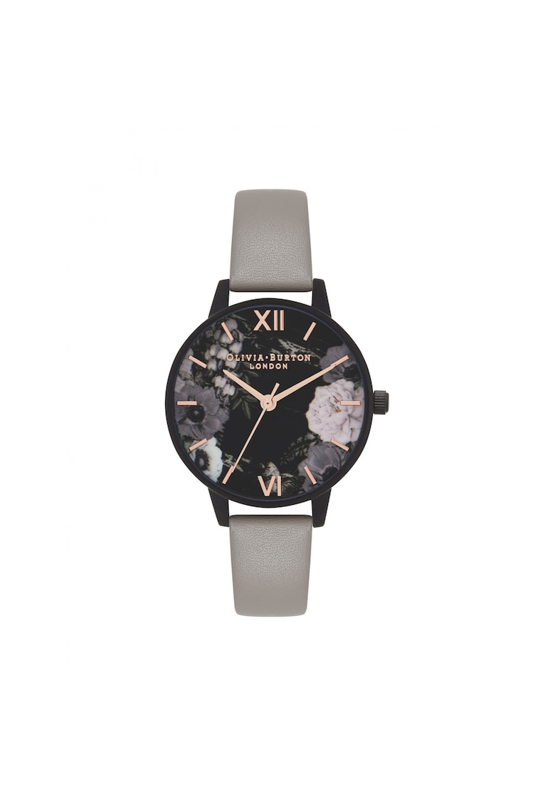 Caracteristici Tip mecanism: quartz Tip display: analog Stil: casual Functii: minut Rezistenta la apa: 5 atm Cadran Material geam: cristal mineral Culoare cadran: negru Tip citire cadran: linii Carcasa Forma carcasa: rotunda Material carcasa: inox Culoare carcasa: negru Diametru carcasa: 30 mm Curea/bratara Tip: curea Material curea/bratara: piele ecologica Culoare curea/bratara: gri