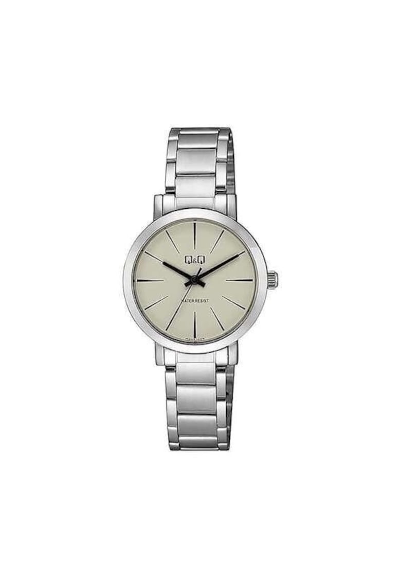 Caracteristici Tip mecanism: quartz Provenienta mecanism: japonia Tip display: analog Stil: casual Functii: ora Rezistenta la apa: 3 atm Cadran Material geam: cristal mineral Culoare cadran: galben Tip citire cadran: linii Carcasa Forma carcasa: rotunda Material carcasa: metal Culoare carcasa: argintiu Diametru carcasa: 32 mm Curea/bratara Tip: bratara Material curea/bratara: metal Culoare curea/bratara: argintiu