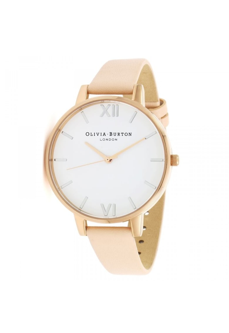 Caracteristici Tip mecanism: quartz Tip display: analog Stil: casual Functii: minut Rezistenta la apa: 5 atm Cadran Material geam: cristal mineral Culoare cadran: alb Tip citire cadran: linii Carcasa Forma carcasa: rotunda Material carcasa: inox Culoare carcasa: auriu Diametru carcasa: 38 mm Curea/bratara Tip: curea Material curea/bratara: piele naturala Culoare curea/bratara: bej