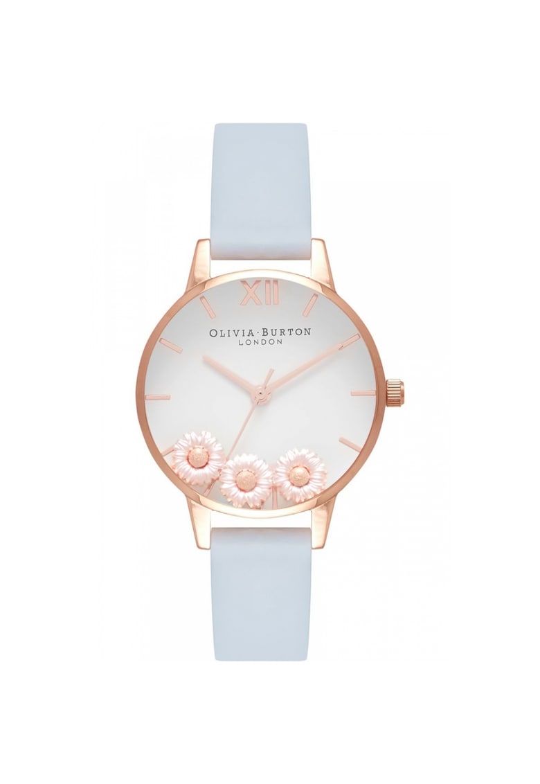 Caracteristici Tip mecanism: quartz Tip display: analog Stil: casual Functii: minut Rezistenta la apa: 3 atm Cadran Material geam: cristal mineral Culoare cadran: alb Tip citire cadran: linii Carcasa Forma carcasa: rotunda Material carcasa: inox Culoare carcasa: roz Diametru carcasa: 30 mm Curea/bratara Tip: curea Material curea/bratara: piele ecologica Culoare curea/bratara: albastru