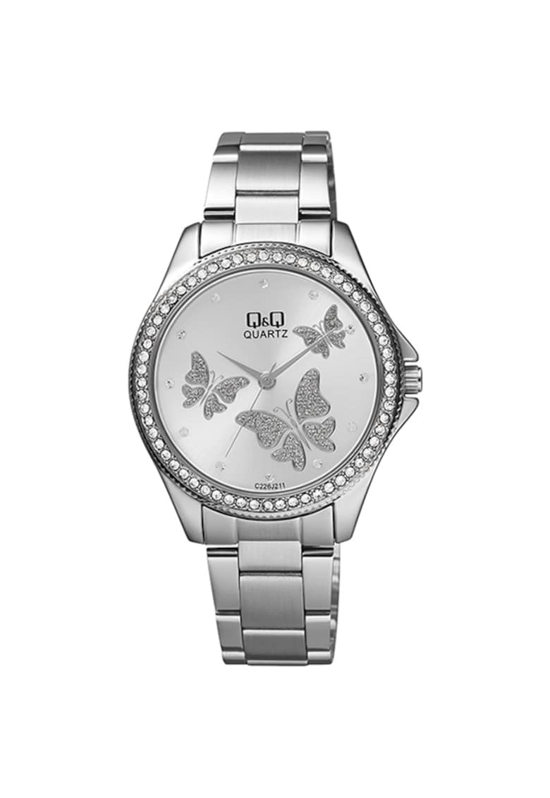 Caracteristici Tip mecanism: quartz Provenienta mecanism: japonia Tip display: analog Stil: elegant Functii: ora Rezistenta la apa: 3 atm Cadran Material geam: cristal mineral Culoare cadran: argintiu Tip citire cadran: puncte Carcasa Forma carcasa: rotunda Material carcasa: metal Culoare carcasa: argintiu Diametru carcasa: 44 mm Curea/bratara Tip: bratara Material curea/bratara: metal Culoare curea/bratara: argintiu