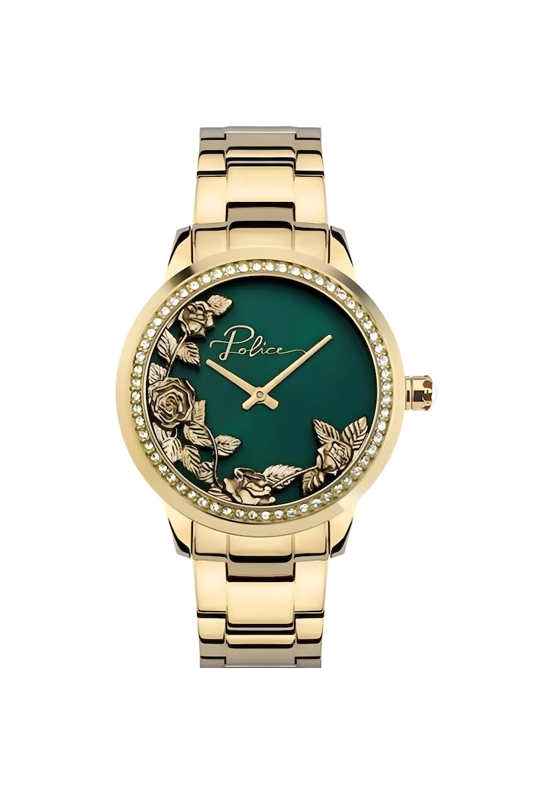 Caracteristici Tip mecanism: quartz Tip display: analog Stil: casual Functii: minut Rezistenta la apa: 3 atm Cadran Material geam: cristal mineral Culoare cadran: verde Tip citire cadran: fara indici Carcasa Forma carcasa: rotunda Material carcasa: inox Culoare carcasa: auriu Diametru carcasa: 34 mm Curea/bratara Tip: bratara Material curea/bratara: inox Culoare curea/bratara: auriu