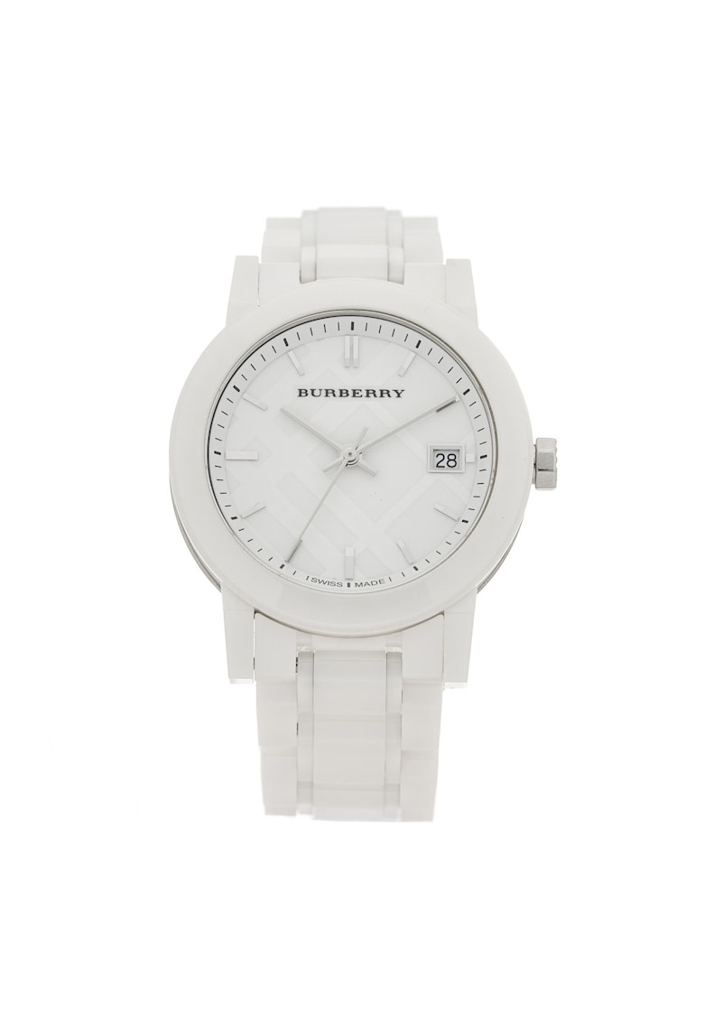 Caracteristici Tip mecanism: quartz Tip display: analog Stil: casual Functii: afisare data Rezistenta la apa: 5 atm Cadran Material geam: cristal safir Culoare cadran: alb Tip citire cadran: linii Carcasa Forma carcasa: rotunda Material carcasa: ceramica Culoare carcasa: alb Diametru carcasa: 34 mm Curea/bratara Tip: bratara Material curea/bratara: ceramica Culoare curea/bratara: alb