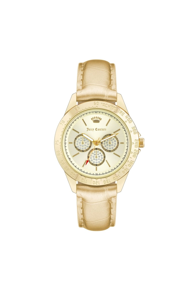 Caracteristici Tip mecanism: quartz Tip display: analog Stil: casual Functii: minut Rezistenta la apa: 3 atm Cadran Material geam: cristal mineral Culoare cadran: auriu Tip citire cadran: linii Carcasa Forma carcasa: rotunda Material carcasa: inox Culoare carcasa: auriu Diametru carcasa: 38 mm Curea/bratara Tip: curea Material curea/bratara: piele naturala Culoare curea/bratara: auriu