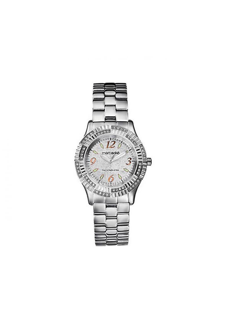 Caracteristici Tip mecanism: quartz Tip display: analog Stil: casual Functii: minut Rezistenta la apa: 5 atm Cadran Material geam: cristal mineral Culoare cadran: argintiu Tip citire cadran: cifre arabe Carcasa Forma carcasa: rotunda Material carcasa: inox Culoare carcasa: argintiu Diametru carcasa: 37 mm Curea/bratara Tip: bratara Material curea/bratara: inox Culoare curea/bratara: argintiu