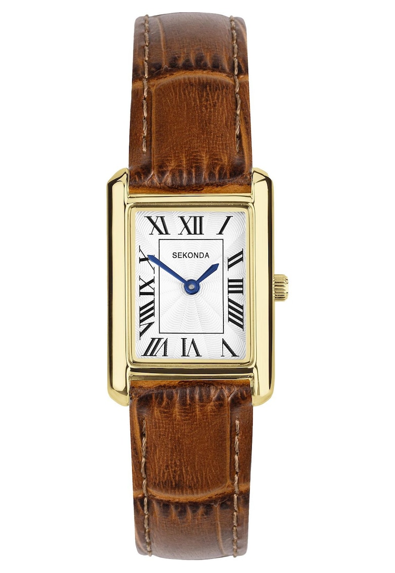 - minut Rezistenta la apa: 3 atm Ambalaj: produsul este livrat cu un certificat de autenticitate. Cadran Material geam: cristal mineral Culoare cadran: alb Carcasa Forma carcasa: dreptunghiulara Material carcasa: metal Culoare carcasa: maro Curea/bratara Tip: curea Material curea/bratara: piele naturala Culoare curea/bratara: maro