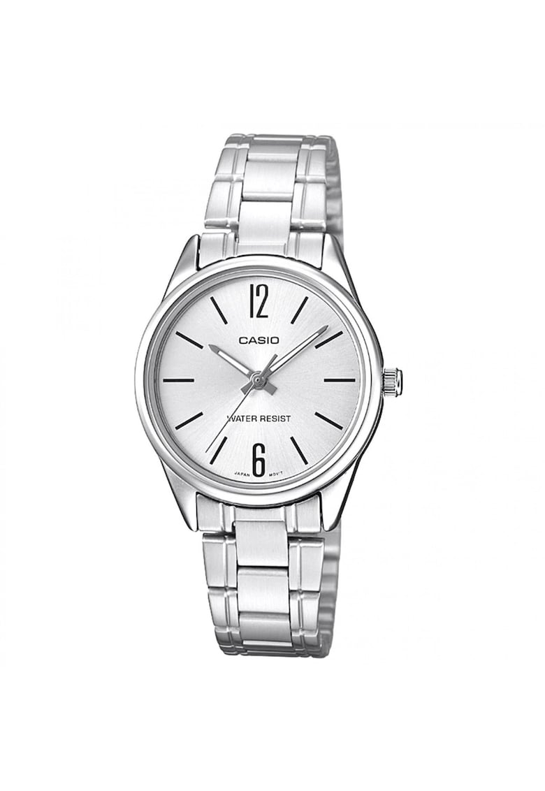 Caracteristici Tip mecanism: quartz Tip display: analog Stil: elegant Functii: minut Rezistenta la apa: 3 atm Cadran Material geam: cristal mineral Culoare cadran: argintiu Tip citire cadran: cifre arabe Carcasa Forma carcasa: rotunda Material carcasa: inox Culoare carcasa: argintiu Diametru carcasa: 28 mm Curea/bratara Tip: bratara Material curea/bratara: inox Culoare curea/bratara: argintiu