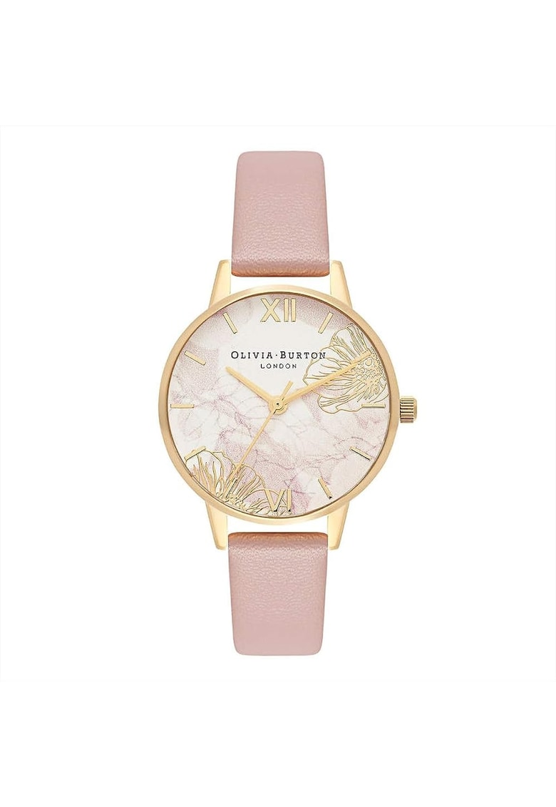 Caracteristici Tip mecanism: quartz Tip display: analog Stil: casual Functii: minut Rezistenta la apa: 3 atm Cadran Material geam: cristal mineral Culoare cadran: roz Tip citire cadran: linii Carcasa Forma carcasa: rotunda Material carcasa: inox Culoare carcasa: auriu Diametru carcasa: 30 mm Curea/bratara Tip: curea Material curea/bratara: piele ecologica Culoare curea/bratara: roz