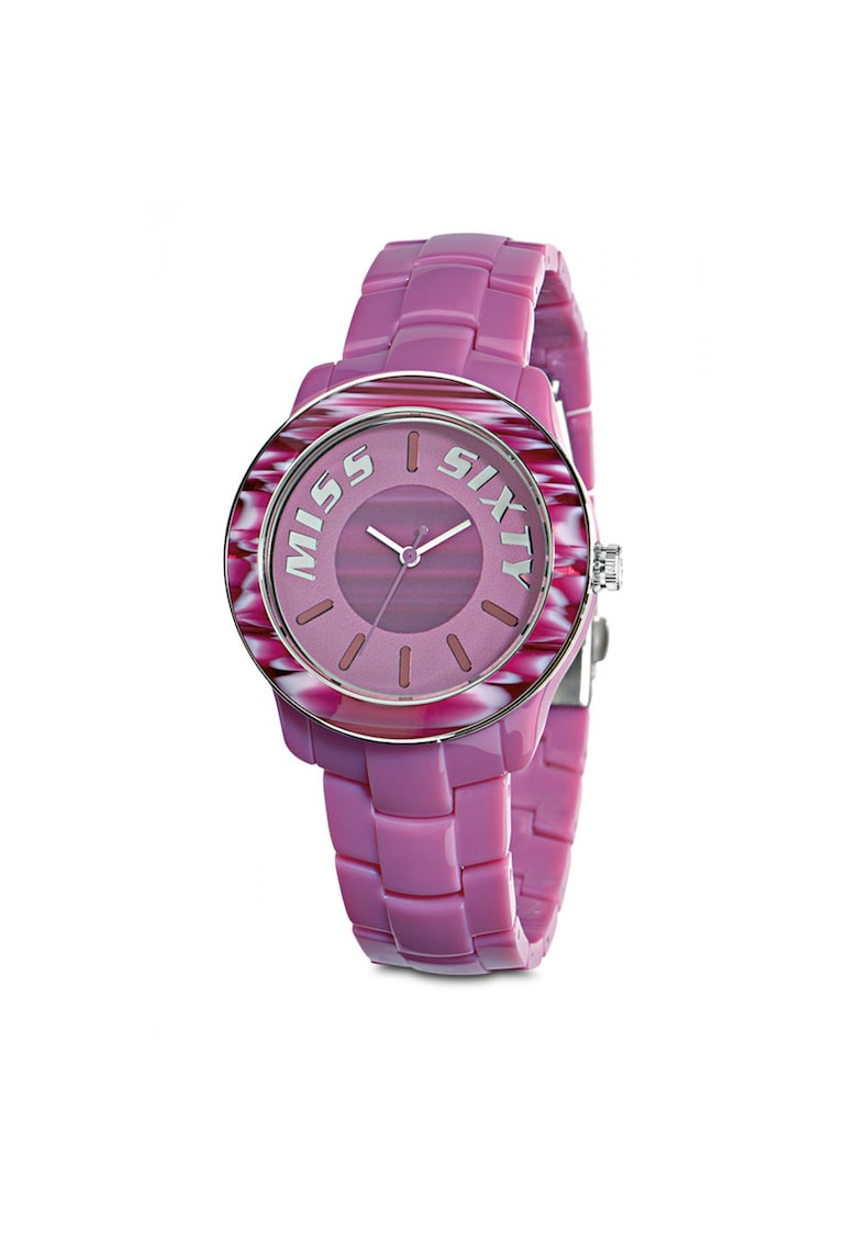 Caracteristici Tip mecanism: quartz Tip display: analog Stil: casual Functii: minut Rezistenta la apa: 3 atm Cadran Material geam: cristal mineral Culoare cadran: roz Tip citire cadran: cifre arabe Carcasa Forma carcasa: rotunda Material carcasa: plastic Culoare carcasa: mov Diametru carcasa: 39 mm Curea/bratara Tip: bratara Material curea/bratara: rasina Culoare curea/bratara: mov