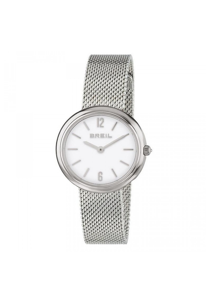 Caracteristici Tip mecanism: quartz Tip display: analog Stil: casual Functii: minut Rezistenta la apa: 3 atm Cadran Material geam: cristal mineral Culoare cadran: alb Tip citire cadran: linii Carcasa Forma carcasa: rotunda Material carcasa: inox Culoare carcasa: argintiu Diametru carcasa: 35 mm Curea/bratara Tip: plasa Material curea/bratara: inox Culoare curea/bratara: argintiu