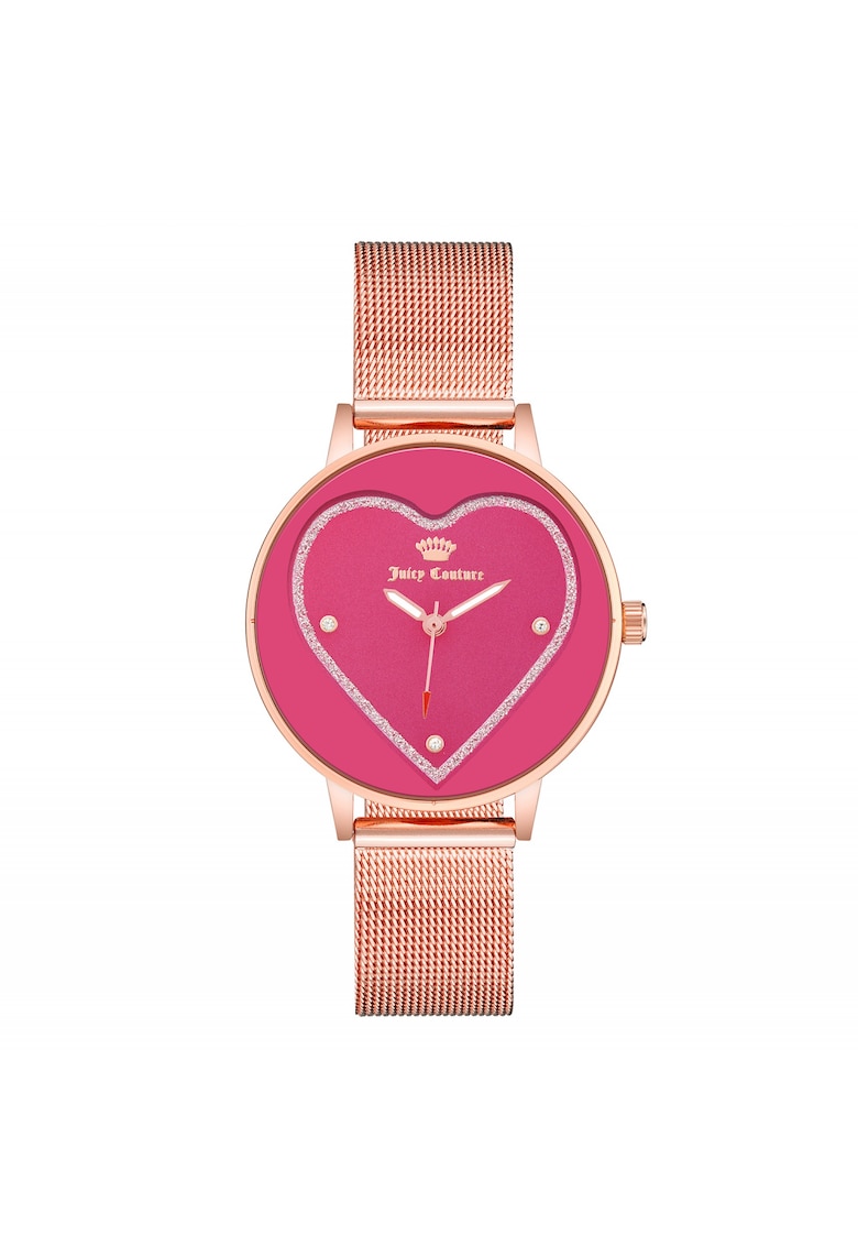 Caracteristici Tip mecanism: quartz Tip display: analog Stil: casual Functii: minut Rezistenta la apa: 3 atm Cadran Material geam: cristal mineral Culoare cadran: roz Tip citire cadran: fara indici Carcasa Forma carcasa: rotunda Material carcasa: inox Culoare carcasa: auriu rose Diametru carcasa: 38 mm Curea/bratara Tip: plasa Material curea/bratara: inox Culoare curea/bratara: auriu rose