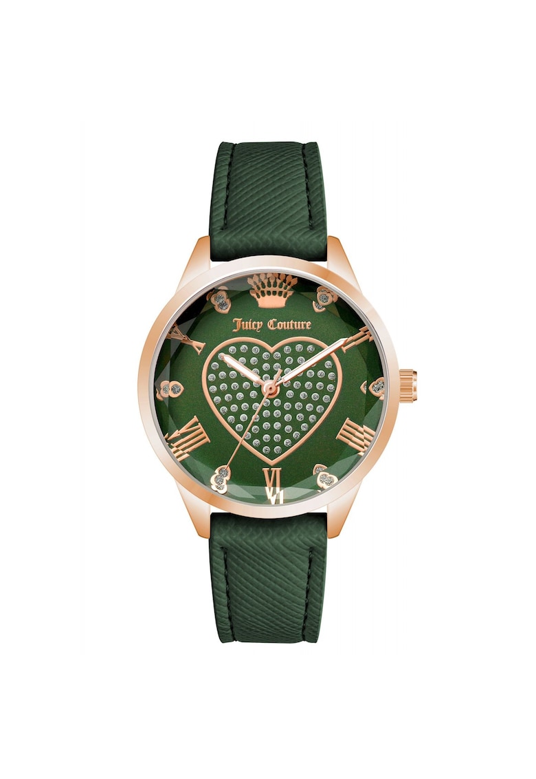Caracteristici Tip mecanism: quartz Tip display: analog Stil: casual Functii: minut Rezistenta la apa: 3 atm Cadran Material geam: cristal mineral Culoare cadran: verde Tip citire cadran: cifre romane Carcasa Forma carcasa: rotunda Material carcasa: inox Culoare carcasa: auriu Diametru carcasa: 35 mm Curea/bratara Tip: curea Material curea/bratara: piele naturala Culoare curea/bratara: verde