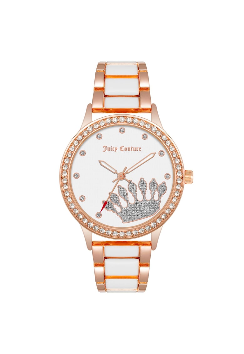 Caracteristici Tip mecanism: quartz Tip display: analog Stil: casual Functii: minut Rezistenta la apa: 3 atm Cadran Material geam: cristal mineral Culoare cadran: alb Tip citire cadran: puncte Carcasa Forma carcasa: rotunda Material carcasa: inox Culoare carcasa: auriu Diametru carcasa: 38 mm Curea/bratara Tip: bratara Material curea/bratara: inox Culoare curea/bratara: alb