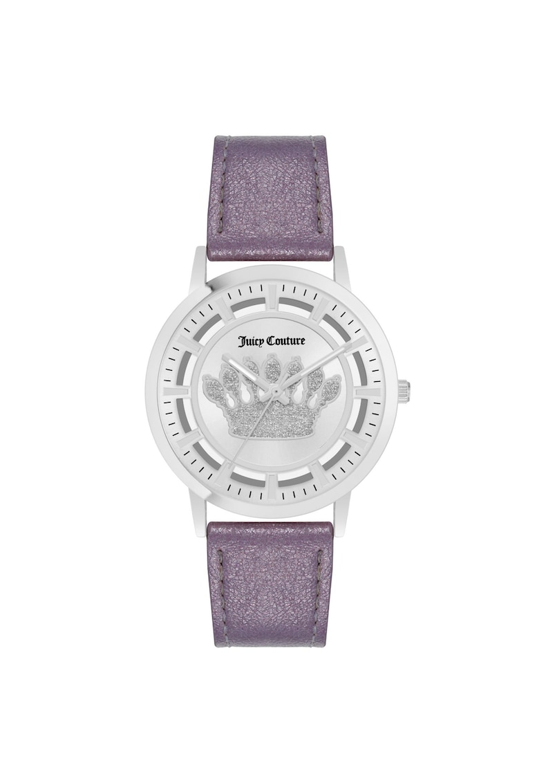 Caracteristici Tip mecanism: quartz Tip display: analog Stil: casual Functii: minut Rezistenta la apa: 3 atm Cadran Material geam: cristal mineral Culoare cadran: argintiu Tip citire cadran: linii Carcasa Forma carcasa: rotunda Material carcasa: inox Culoare carcasa: argintiu Diametru carcasa: 36 mm Curea/bratara Tip: curea Material curea/bratara: piele naturala Culoare curea/bratara: mov
