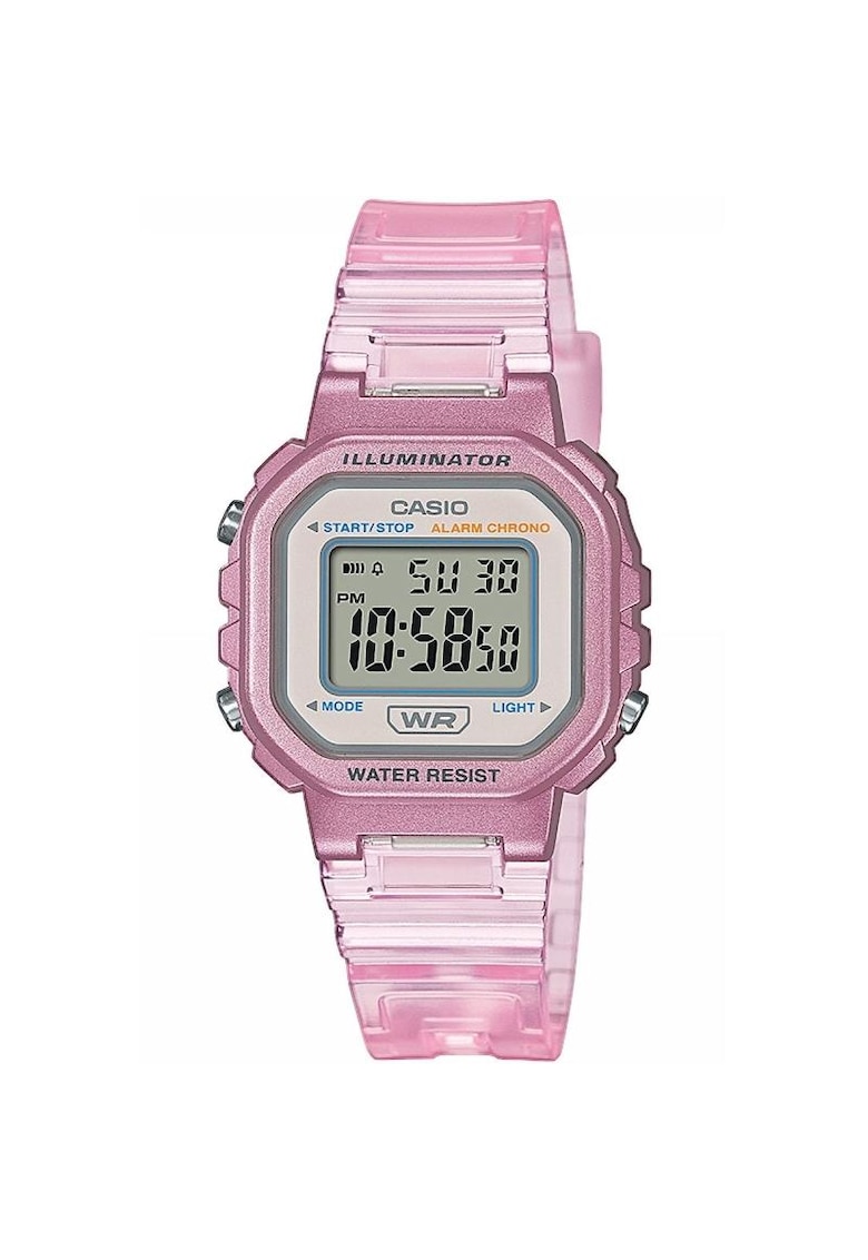 - lumina de fundal Cadran Material geam: plastic Culoare cadran: bej Tip citire cadran: cifre arabe Carcasa Forma carcasa: dreptunghiulara Material carcasa: rasina Culoare carcasa: roz Diametru carcasa: 30 mm Curea/bratara Tip: curea Material curea/bratara: rasina Culoare curea/bratara: roz