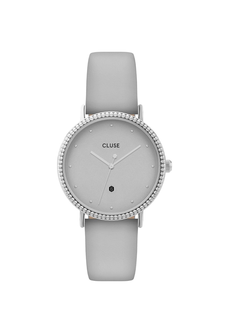 Caracteristici Tip mecanism: quartz Tip display: analog Stil: casual Functii: afisare data Rezistenta la apa: 5 atm Cadran Material geam: cristal mineral Culoare cadran: gri Tip citire cadran: puncte Carcasa Forma carcasa: rotunda Material carcasa: inox Culoare carcasa: argintiu Diametru carcasa: 33 mm Curea/bratara Tip: curea Material curea/bratara: piele naturala Culoare curea/bratara: gri